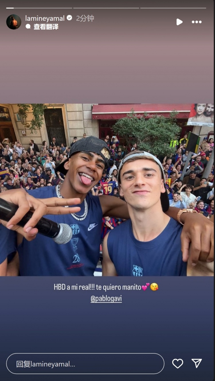 8月5日讯 亚马尔更新社媒动态,祝队友加维诞辰适意。