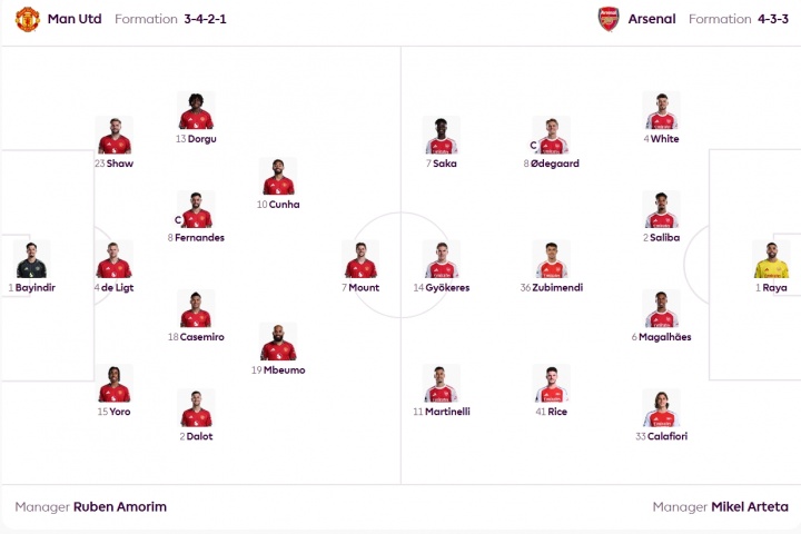 曼联vs阿森纳首发:姆贝莫、库尼亚、约克雷斯出战,塞斯科替补
