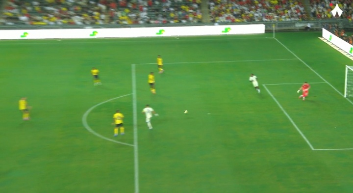 本泽马BUFF😂利雅得凯旋门将出球矗立,本泽马原地断球射门打偏
