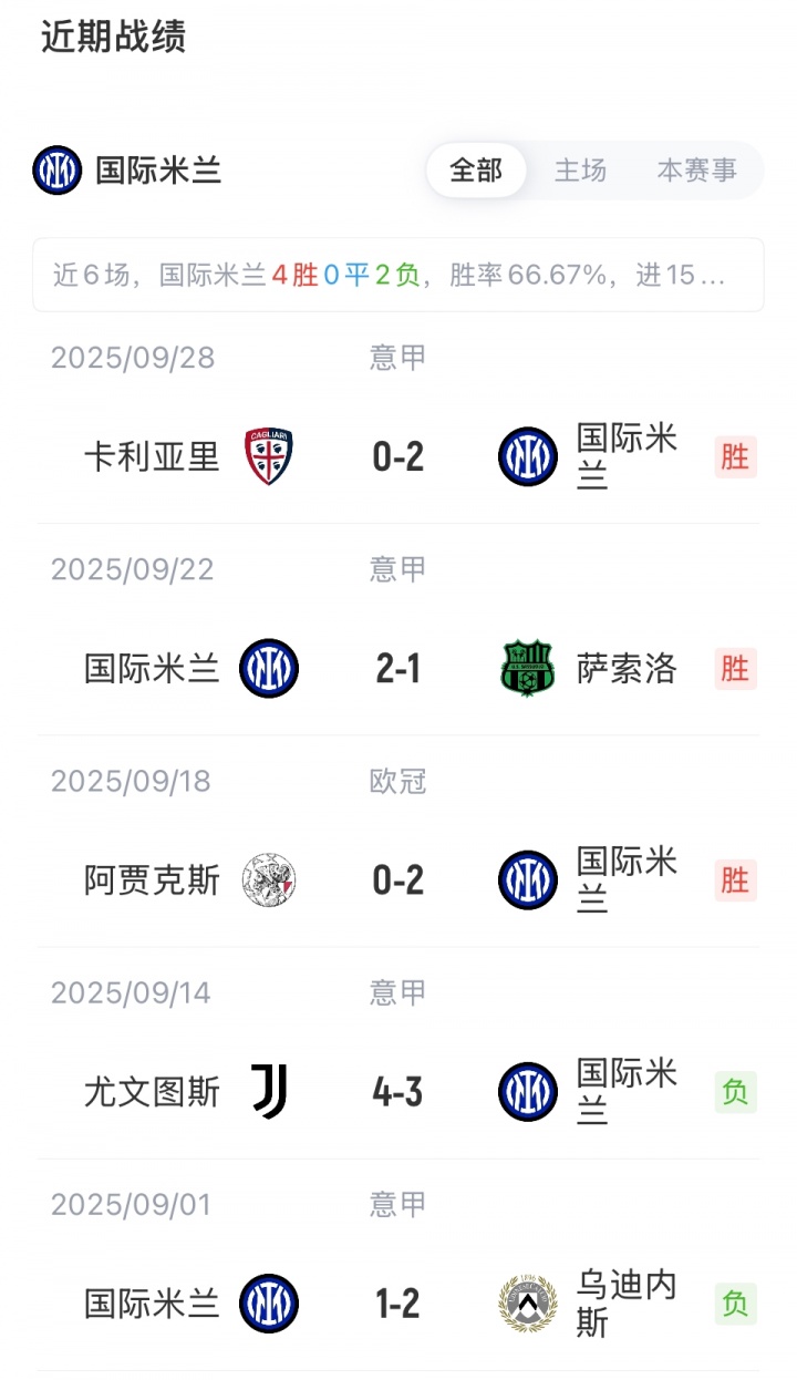 10月1日讯 欧冠联赛阶段第2轮,海外米兰主场迎战布拉格斯拉维亚,赛前首发名单公布。国米方面,比拟上一场比赛,后防六东谈主仅巴斯托尼邻接两场比赛首发,其余五东谈主一皆更换,中场苏西奇和泽林斯基替换了上一场比赛的姆希塔良和巴雷拉。