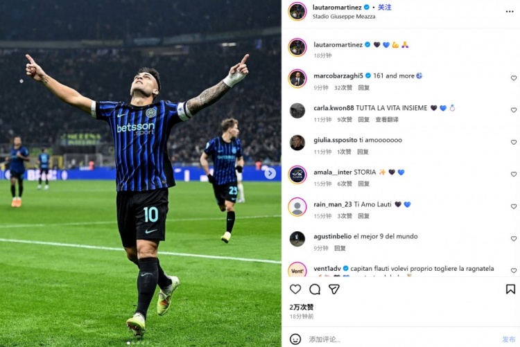 劳塔罗也转发了相干数据,并晒出我方的庆祝照驰念,同期配上“🖤💙💪🙏”神采标记。