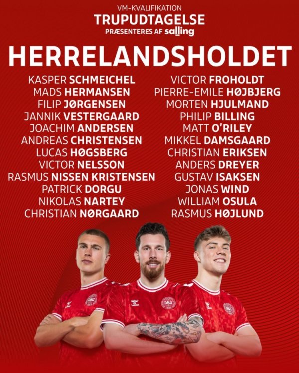 11月4日讯 丹麦公布本月世初赛国度队大名单,小舒梅切尔、埃里克森、霍伊伦、多尔古在列。 本月世初赛丹麦将先主场对阵白俄罗斯、后客战苏格兰。 丹麦世初赛名单: 门将:舒梅切尔(凯尔特东谈主)、赫尔曼森(西汉姆联)、约恩森(切尔西) 后卫:韦斯特高(莱斯特城)、安诺森(富勒姆)、克里斯滕森(巴萨)、霍斯贝里(斯特拉斯堡)、维克托-尼尔森(维罗纳)、拉斯穆斯-克里斯滕森(法兰克福)、多尔古(曼联) 中场:纳泰伊(斯图加特)、诺尔高(阿森纳)、弗罗霍尔特(波尔图)、霍伊别尔(马赛)......查看更多