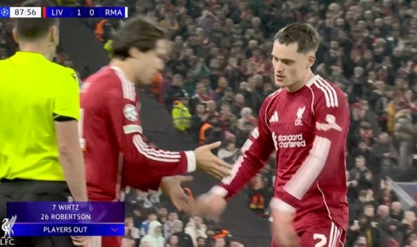 11月05日讯 欧冠第4轮利物浦vs皇马第89分钟,利物浦再次作念出2个换东说念主缓助,维尔茨、罗伯逊被换下,凯尔凯兹、基耶萨替补登场。......查看更多