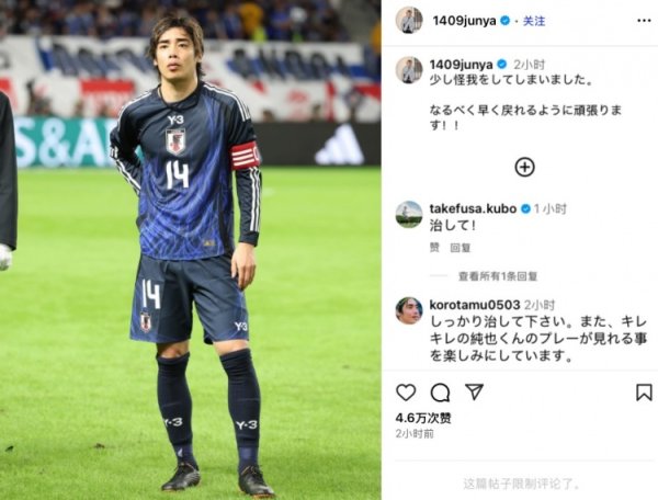 10月15日讯 据日媒Sponichi等的报谈,在昨晚助攻梅开二度帮日本队3-2历史性打败巴西队后,伊东纯也莫得袭取采访,而是平直赶赴病院查验右脚伤势。 本日伊东纯也更新社媒论述伤情,他写谈:“受了少许小伤。我会致力于归附,尽快复返赛场!” 南野拓实、久保建英为这条社媒点赞,久保建英还奉上祝贺:“尽快康复!”......查看更多