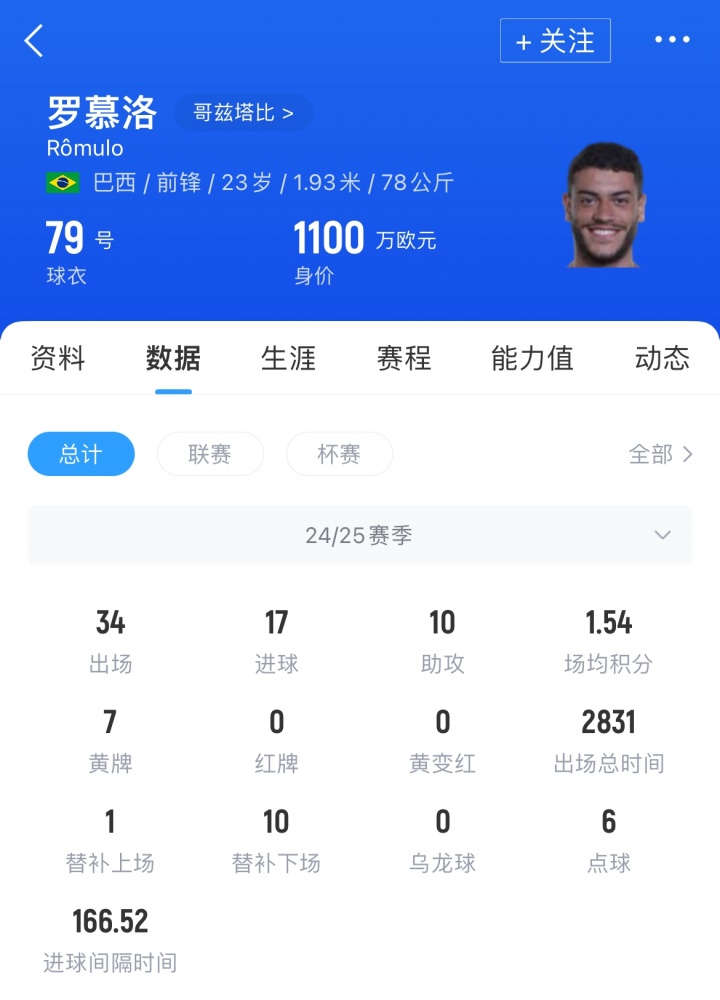 23岁巴西时尚罗慕洛,本赛季代表哥兹塔比出战34场比赛,孝顺17粒进球和10次助攻。现在罗慕洛的身价为1100万欧元。