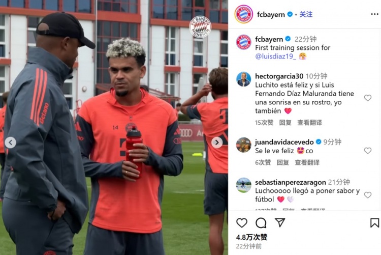 新仁报说念!拜仁官方晒路易斯-迪亚斯首堂锻练课:孔帕尼&凯恩同框
