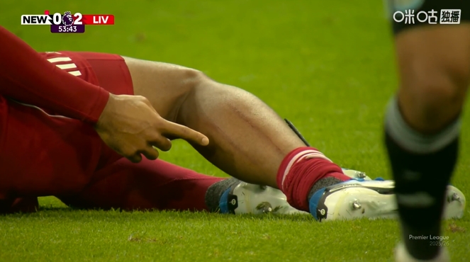 太狠了!范迪克被戈登铲到小腿,两说念血痕明晰可见