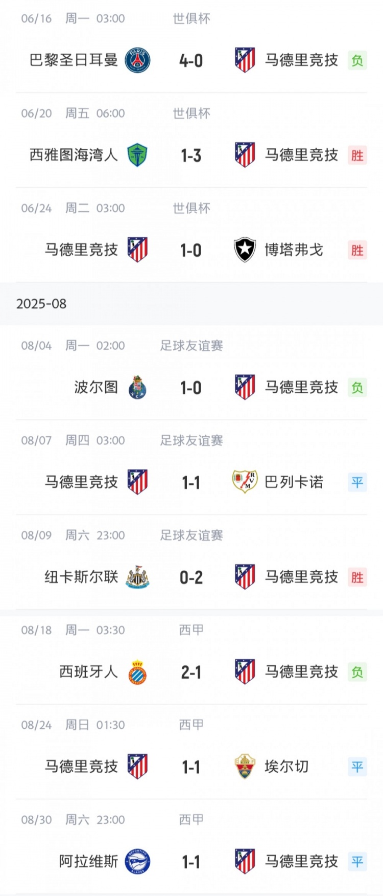 首要问题大!马竞近6场认真比赛仅1场进球数>2,敌手为西雅图