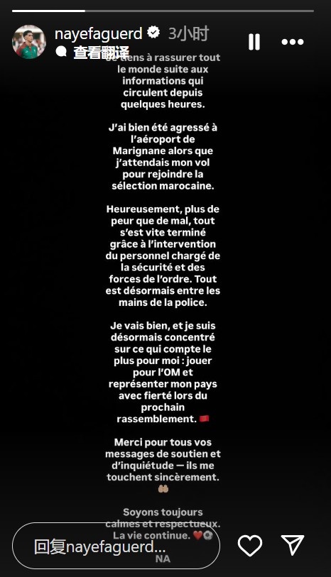 在机场遭伏击!马赛后卫阿格德报吉祥:我当今很好,感谢环球温情