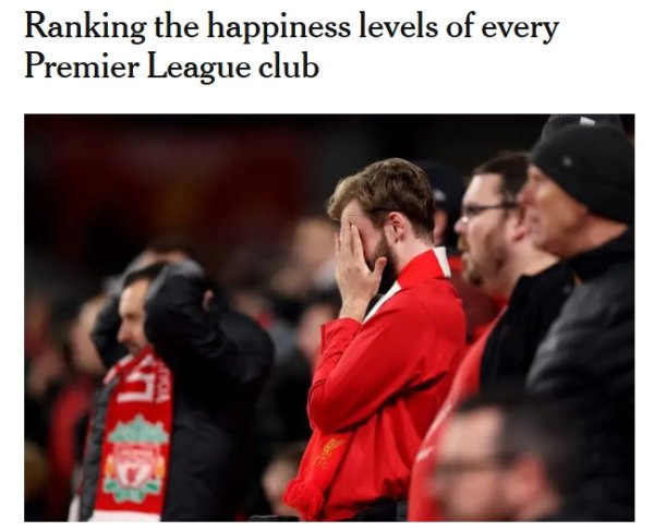 TA排英超球队幸福指数:黑猫枪手蓝军位列1~3 利物浦第15热刺垫底