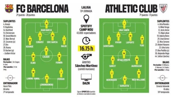 每体猜度巴萨VS毕巴首发:莱万亚马尔领衔锋线,霍安·加西亚先发
