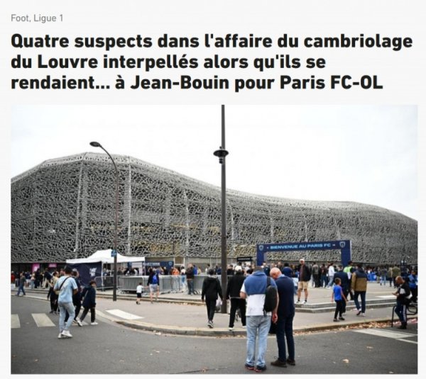法媒:卢浮宫盗窃案嫌疑东说念主在赶赴不雅战巴黎FCvs里昂比赛时被捕