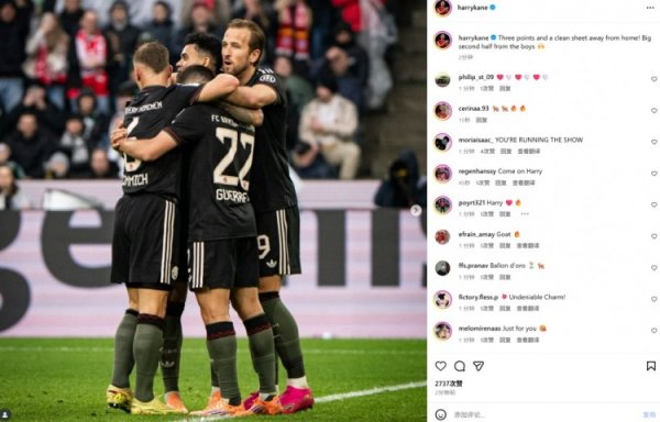 10月26日讯 在本轮德甲,拜仁3-0大捷门兴。 本场比赛凯恩未能破门,纠合10场进球遭驱逐。赛后凯恩社媒晒出与队友庆祝像片,配文写谈:“在客场全取三分并完成零封,下半场咱们拿出了精彩弘扬。”......查看更多