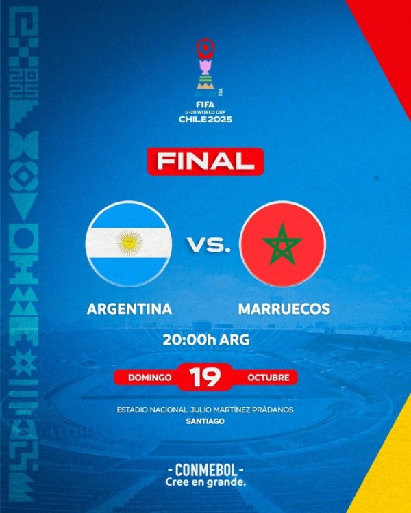 10月16日讯 世青赛半决赛,阿根廷U20队1-0淘汰哥伦比亚U20,闯入决赛! 北京期间10月20日早上7点,世青赛决赛,阿根廷U20将与摩洛哥U20争夺冠军。阿根廷第8次参加世青赛决赛,此前6次夺冠,摩洛哥则是初次进世青赛决赛。......查看更多