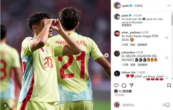 佩德里社媒晒瑰丽性庆祝:一副好👓,让咱们更明晰地看到宇宙杯