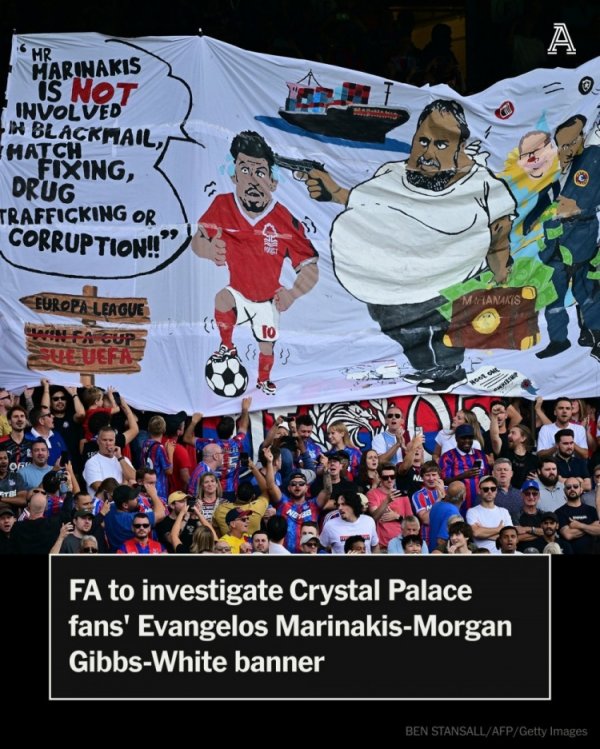 8月25日讯 英超第二轮比赛,水晶宫主场1-1战平诺丁汉丛林。 据TA报说念,英足总将探听水晶宫球迷展示的一面横幅,横幅上浮现诺丁汉丛林雇主马里纳基斯握枪对着中场球员吉布斯-怀特的头部。 横幅上吉布斯-怀特说说念:“马里纳基斯先生并未触及欺诈、附近比赛、贩毒或腐朽!”马里纳基斯一直历害否定与这些指控相关的任何欠妥活动。 左证媒体的报说念,吉布斯-怀特今夏一度接近转会热刺,但诺丁汉丛林休止放东说念主,并以为热刺非法搏斗球员,研讨举报热刺,最终球员续约留队。......查看更多