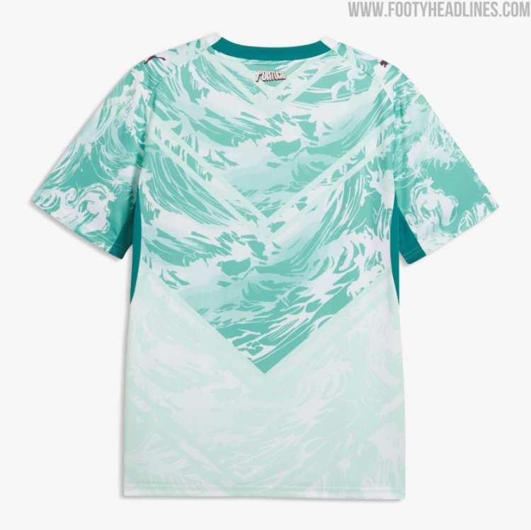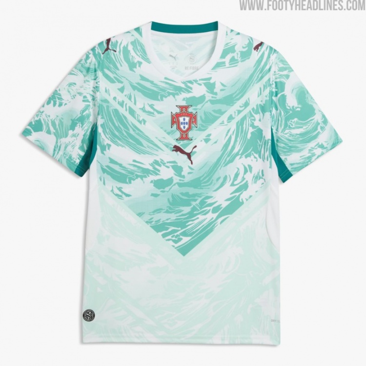据了解,葡萄牙队客场球衣设计从超级英雄战衣(V字形设计)和海洋(图案)中汲取灵感,海洋象征着几代人全心全意为国家队效力的纽带,超级英雄的主题则是彪马将球员们视为激励世界各地球迷、连接不同国界的英雄。