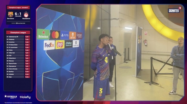 10月22日讯 在本轮欧冠小组赛的一场比赛中,巴萨主场6-1横扫奥林匹亚科斯,赛后,巴萨左后卫巴尔德汲取了媒体的采访。