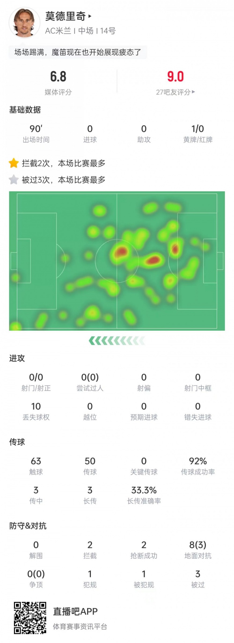 莫德里奇本场比赛数据