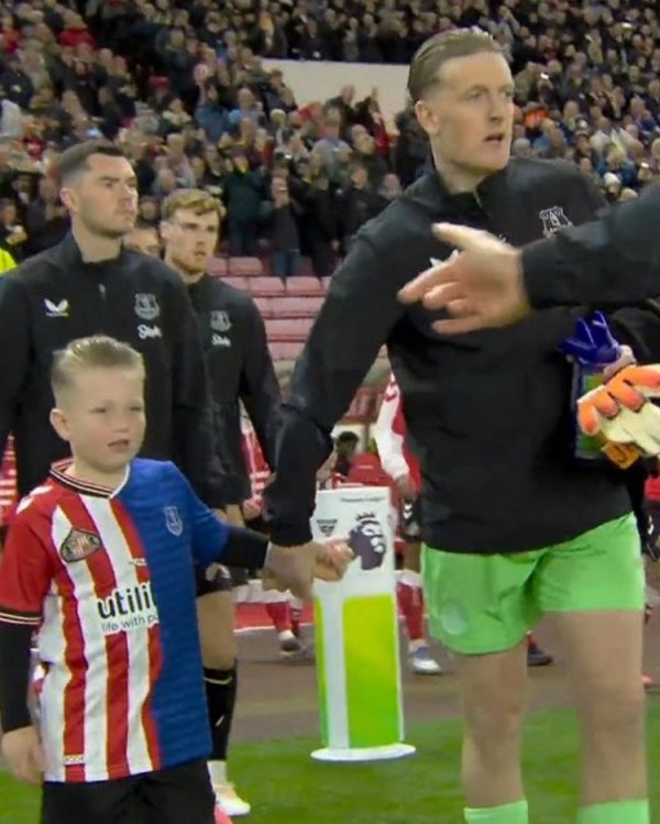 11月4日讯 英超第10轮比赛,埃弗顿客场1-1战平桑德兰。 此役皮克福德担任埃弗顿首发门将,他的犬子身穿桑德兰和埃弗顿的拼接球衣入场。 皮克福德出生于桑德兰青训,这是他作事生计初度对阵儿时效能的俱乐部。......查看更多