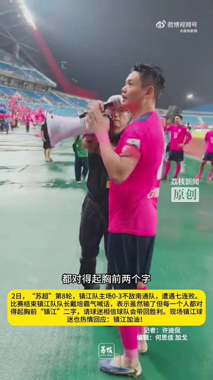 8月3日讯 “苏超”第8轮,镇江队主场0-3不敌南通队,遇到七连败。据“荔枝新闻”报谈,赛后,镇江队队长戴培向球迷霸气喊话。