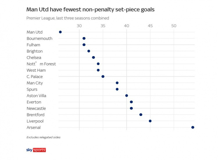 这种要挟对曼联来说尤其要紧,因为他们正寻求晋升定位球得分才气。以前三个赛季,他们是英超定位球进球最少的球队。