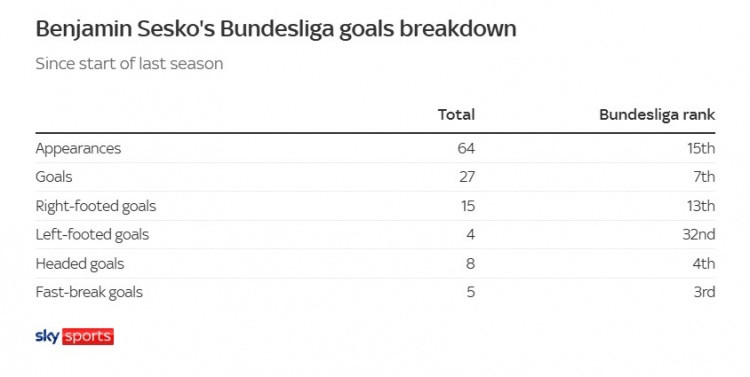 以前两个赛季,塞斯科在德甲的进球记录
