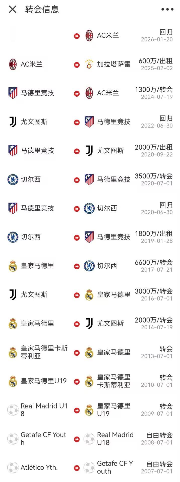 这将是莫拉塔职业糊口着力的第7支球队,此前他已先后为皇马、尤文、切尔西、马竞、AC米兰、加拉塔萨雷着力,并屡次有离队后重返老东家的操作。此外,莫拉塔青训时代还曾着力于赫塔费后生队。
