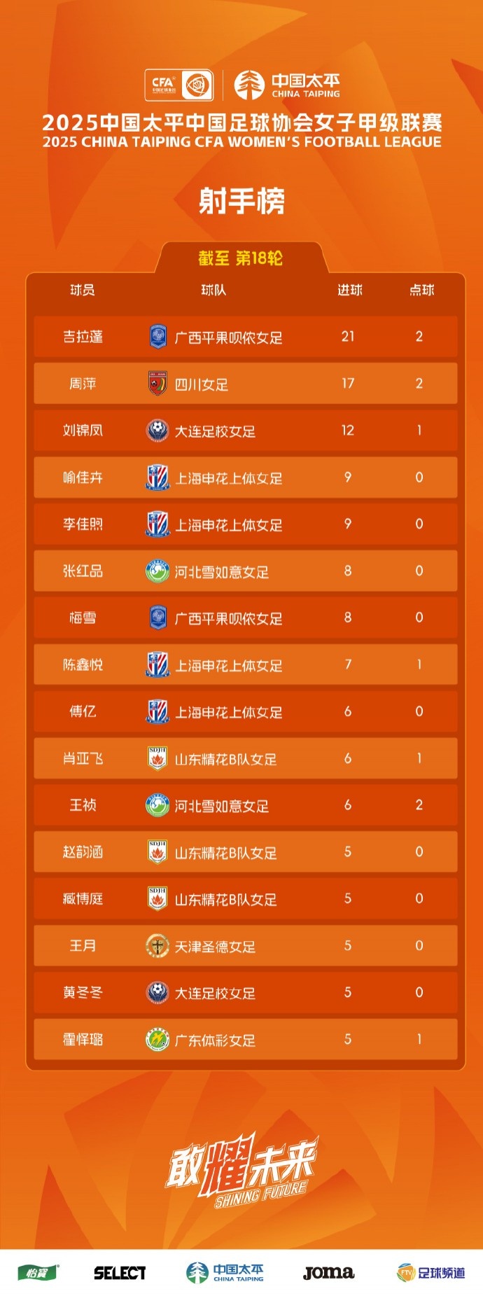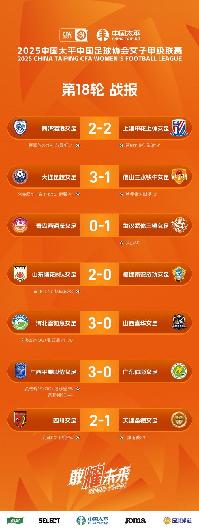 2025中国太平女甲联赛第18轮战报、积分榜、弓手榜