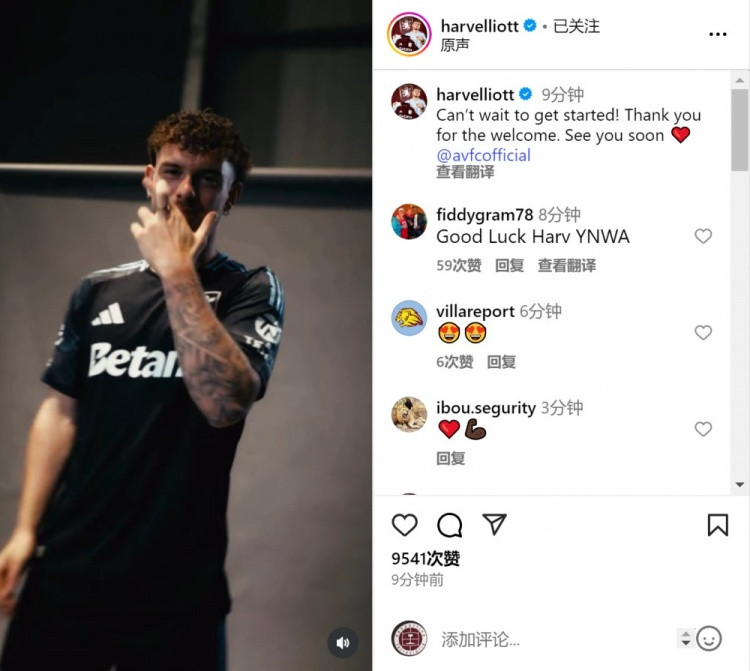 埃利奥特社媒晒出加盟维拉的宣传视频,配文:“迫不足待念念要启动!感谢你们的接待,回头见!”