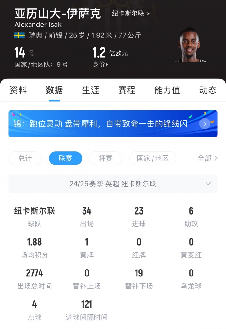 音尘称,伊萨克已与利物浦就一份到2031年放置的合同收尾原则性理论公约。伊萨克但愿在现时转会窗口尽早加盟利物浦。两家俱乐部正在走动。