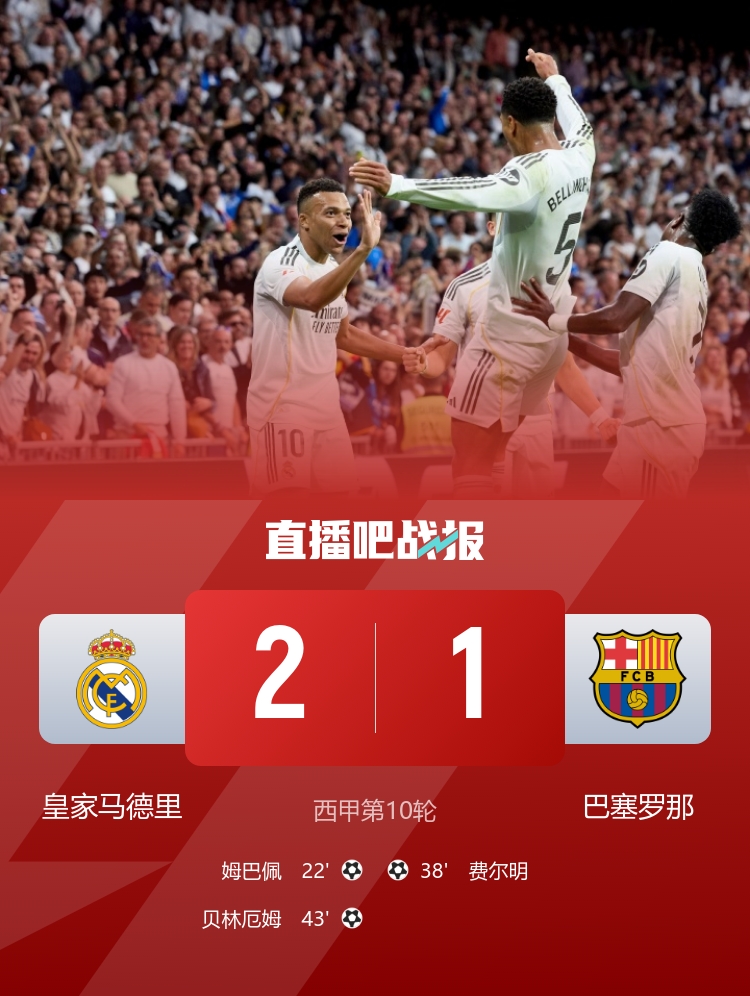 10月27日讯 西甲第10轮,皇马2-1打败巴萨,西甲开局9胜1负5分领跑,巴萨排第2。