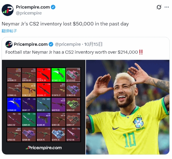 血亏2天薪水😬CS2饰品市集1天挥发17亿好意思元,内马尔库存暴跌5万