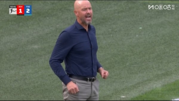 相配动怒!勒沃库森连丢两球被反超,滕哈赫场边作念手势抒发动怒