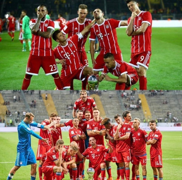拜仁德超杯夺冠后再摆群像Pose!这场景会让你念念起谁?