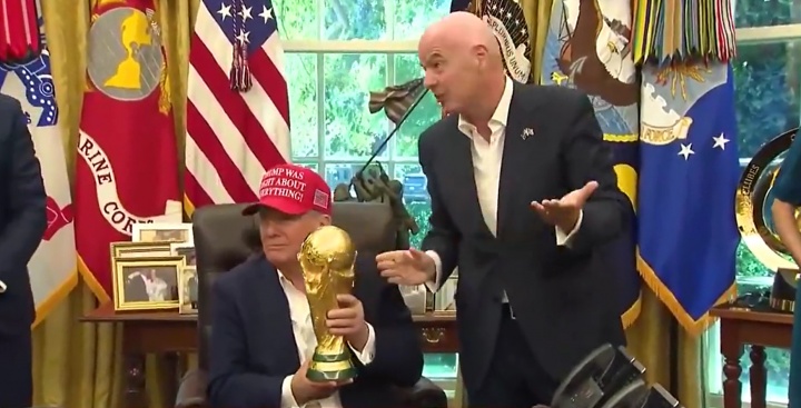 因凡蒂诺说不错摸摸鼎力神杯, 特朗普嘲谑:能保留吗别指望还你
