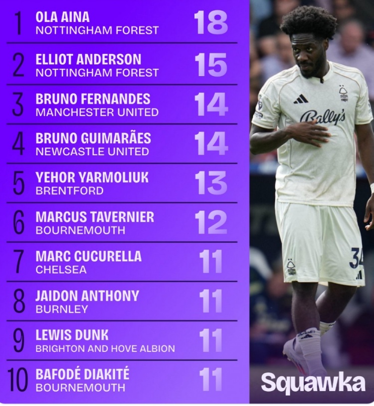 8月28日讯 Squawka统计了英超前两轮比赛球员夺得球权的次数,比肩出榜单,诺丁汉丛林后卫埃纳18次居首,其中10次来自对阵水晶宫的比赛。