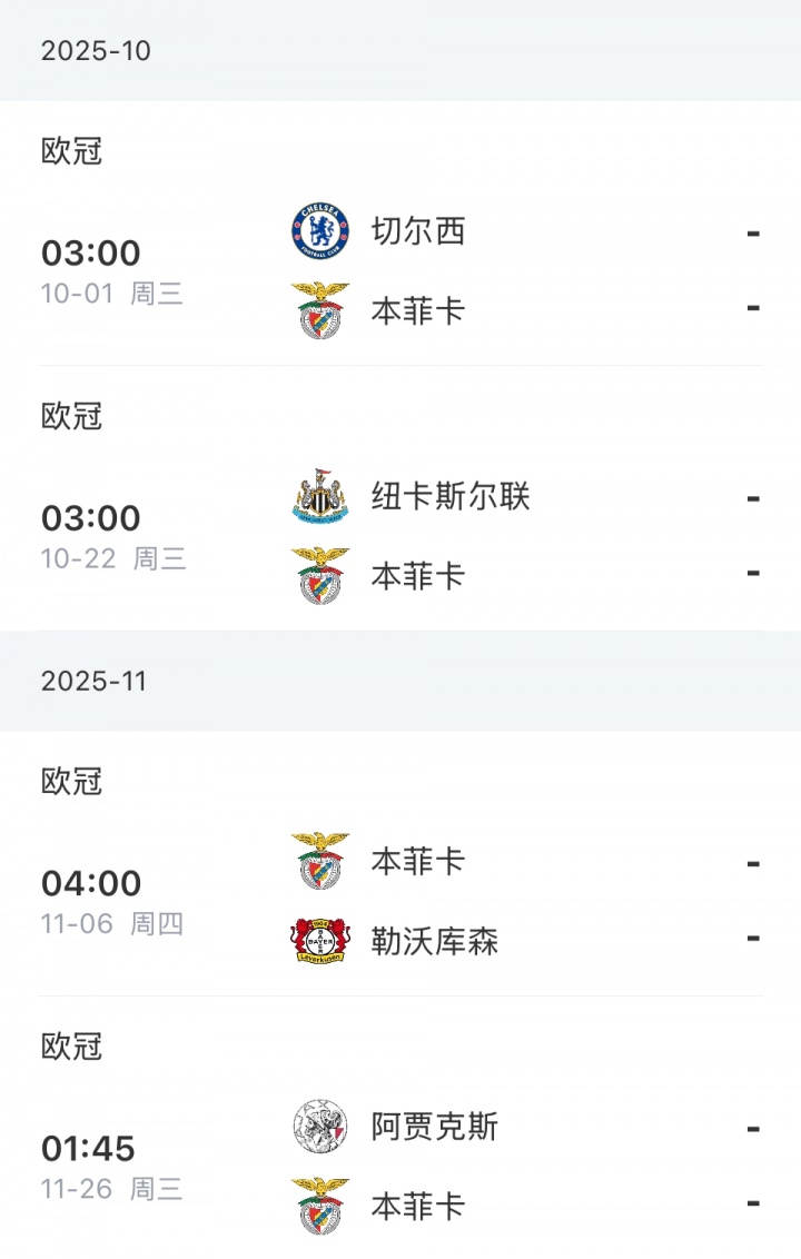 穆里尼奥捏教本菲卡后,球队在欧冠的敌手也可谓剧情满满,最初将回来斯坦福桥对阵老东家切尔西,在联赛阶段临了两轮,又将对阵他捏教国米时的老敌手尤文图斯和另一个老东家皇家马德里。