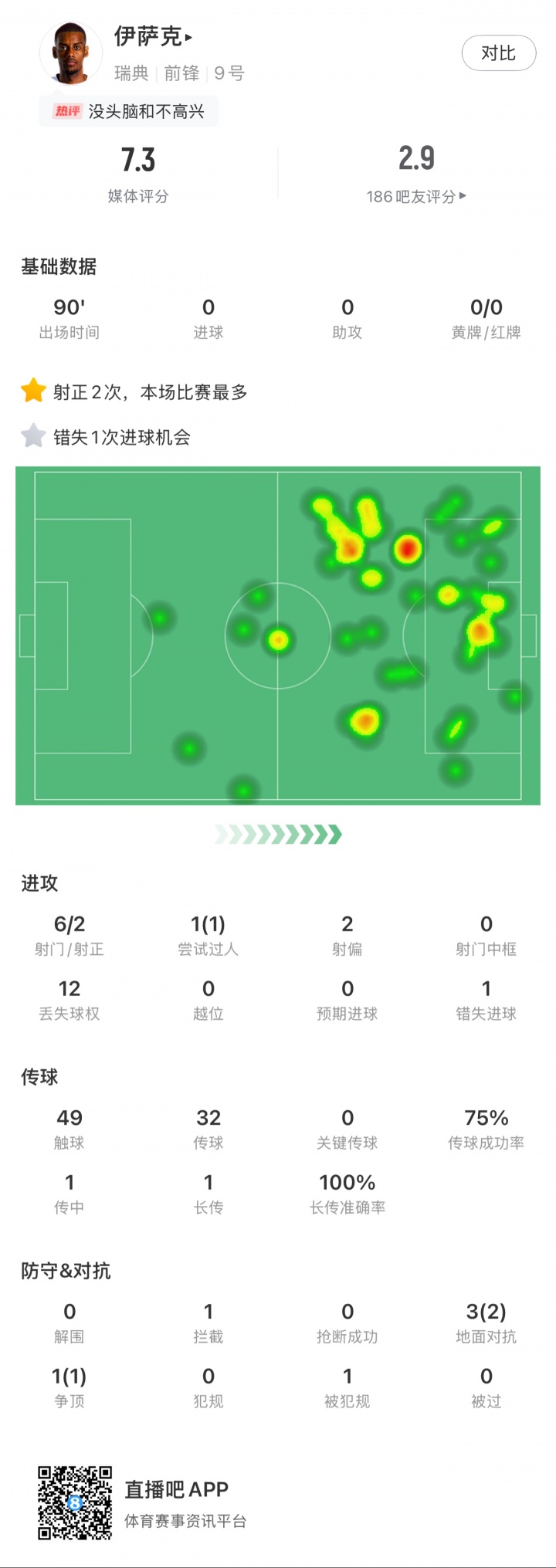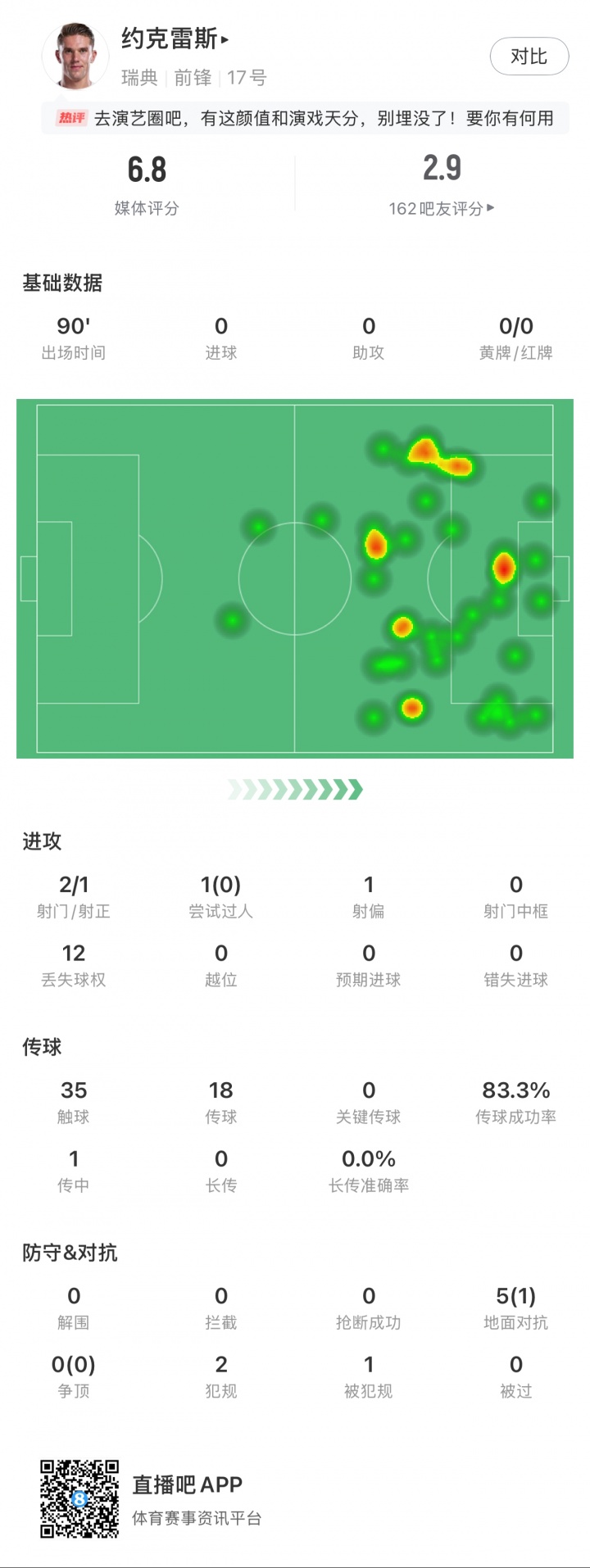 10月世初赛,瑞典先后在主场0-2不敌瑞士、0-1不敌科索沃,两场比赛皆是伊萨克和约克雷斯搭档双前卫,首发打满全场,两东谈主统统11次射门3次射正0进球,其中伊萨克7射2正、约克雷斯4射1正。