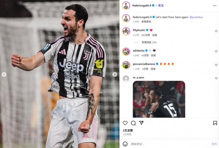 他也在赛后通过社媒晒出我方的庆祝照,并配文:“让咱们从这里运转重整旗饱读@尤文图斯!”