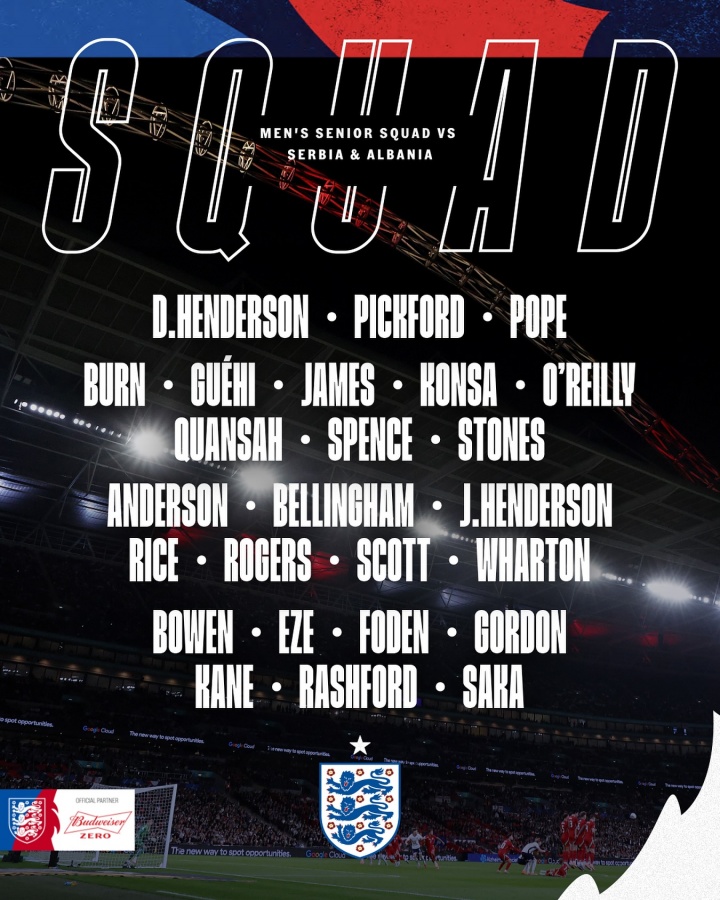 英格兰队公布最新名单备战下周的寰球杯外围赛,他们是欧洲区惟一照旧提前出线的球队,6战全胜一球不丢。曼城的少壮奥赖利和伯恩茅斯的后腰斯科特初次入选。三狮军团东说念主员储备最丰富的是前腰位置,从头入选的贝林厄姆与福登将与罗杰斯争夺首发契机,相同擅长踢这个位置的帕尔默当今在养伤。
