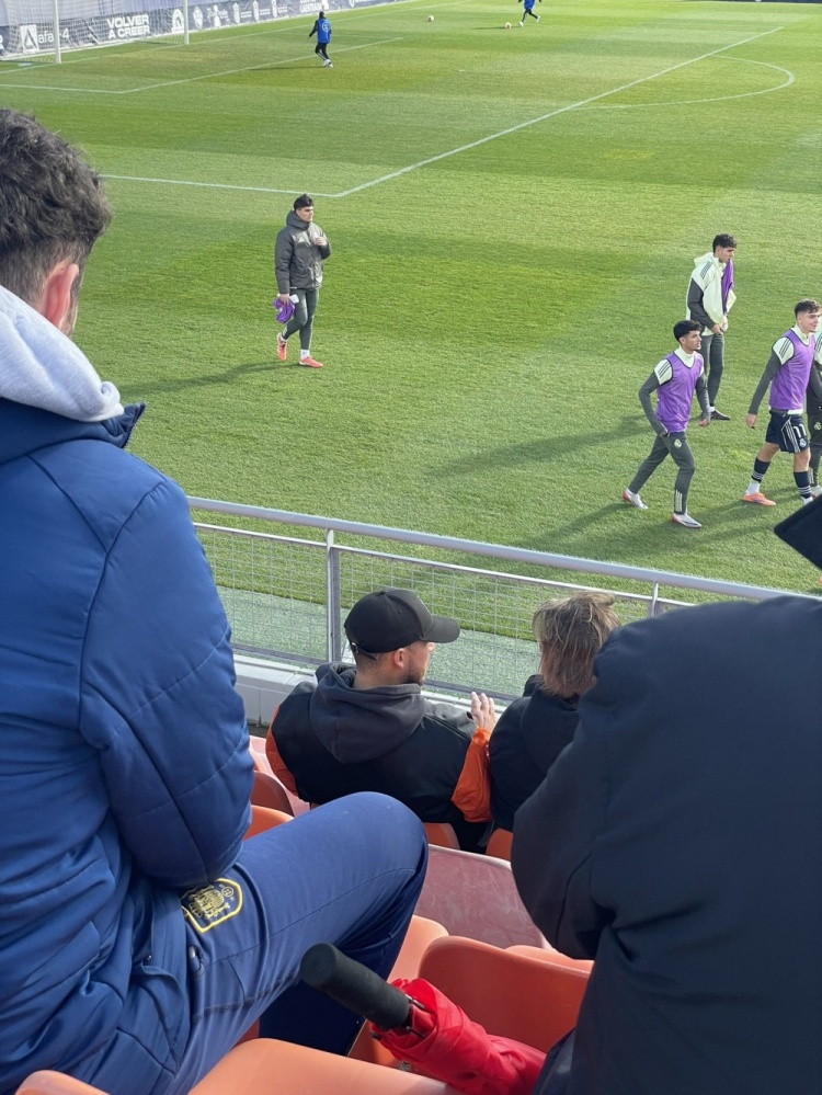 曾效劳于皇马的阿扎尔来到现场,不雅看皇马C队的比赛。阿扎尔2019年到2023年时代效劳皇马,出战76场比赛7球12助。