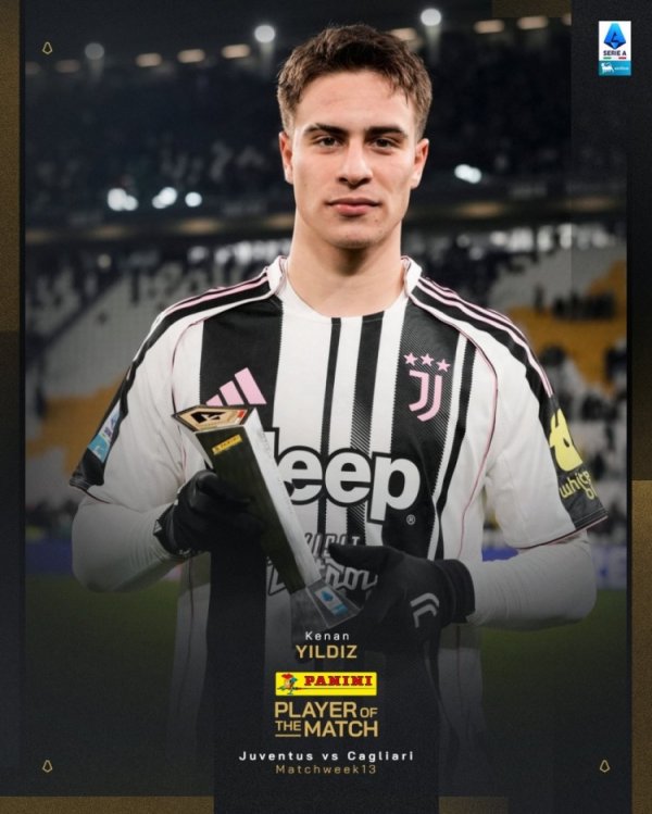 梅开二度!意甲官方:伊尔迪兹当选尤文vs卡利亚里全场最好球员