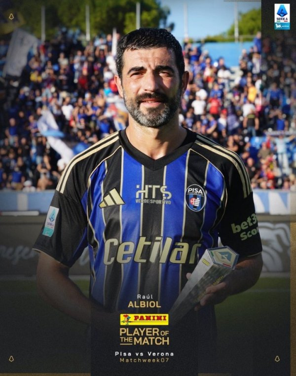 老而弥坚,意甲官方:40岁阿尔比奥尔当选比萨0-0维罗纳全场最好