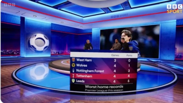 主场虫?热刺本赛季英超4场主场比赛拿4分,仅强于垫底三队