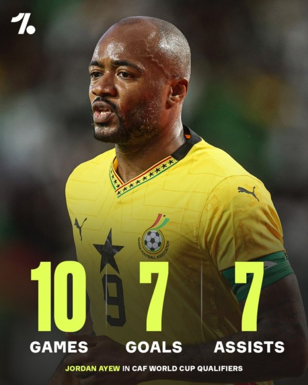 元勋!34岁乔丹-阿尤世初赛10场参与14球,助加纳得到天下杯经历