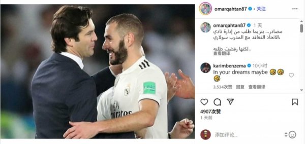 10月4日讯 记者Omar Qahtan报谈,本泽马条目吉达辘集引进索拉里手脚主帅,但遭到拆开,本泽马随后在指摘区辟谣。 索拉里曾和本泽马在皇马协作过,现在他在皇马担任体育总监,在布兰科下课后,有音书称他成为吉达辘集矜恤的对象。 记者在酬酢媒体默示:“音书源称,本泽马曾条目吉达联贬责层签下索拉里,但贬责层拆开了他的央求。” 而本泽马则凯旋在指摘区辟谣:“不祥在你梦里是这么的。”......查看更多
