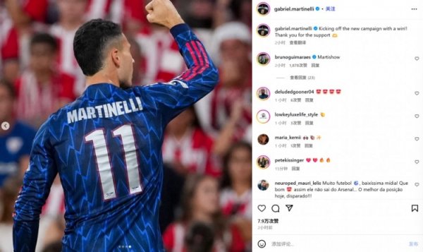 替补传射!马丁内利社媒:以一场得手开启新征途,感谢球迷因循