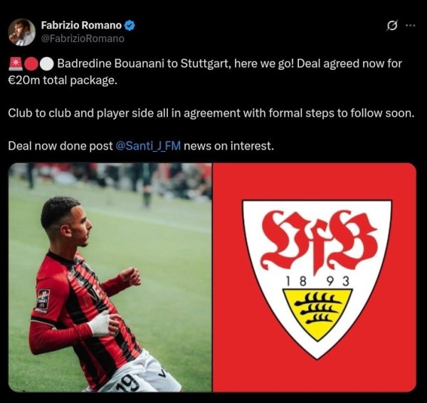 Here we go!罗马诺:斯图加特行将签下尼斯20岁前卫布阿纳尼