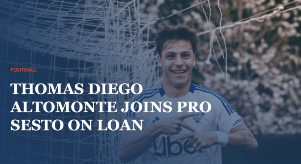 官方:科莫外租18岁边锋阿尔托蒙特到意丁球队普罗塞斯托